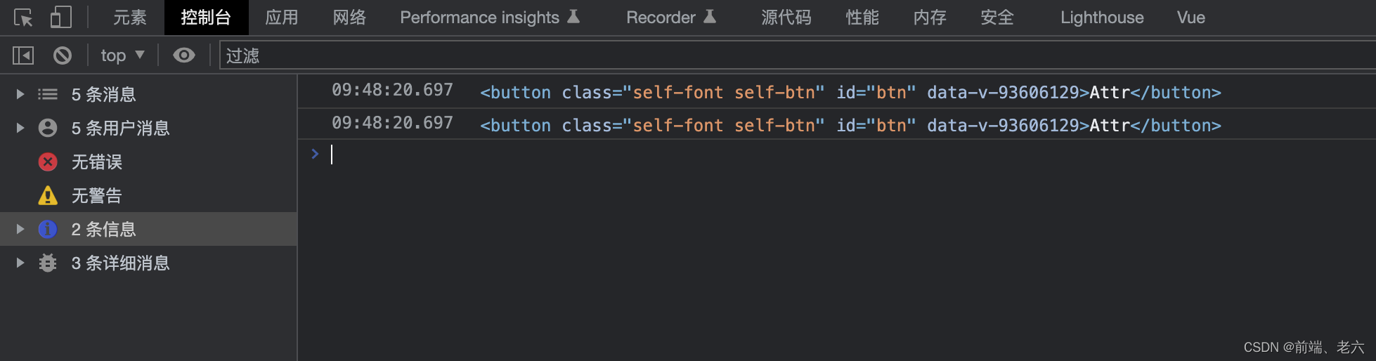 可以看到上面打印的结果是可以获取到的,但是如果是直接获取的话,dom元素是null,也就是直接获取的话,会因为dom加载顺序的问题导致获取不到最后的dom,这里需要注意一点