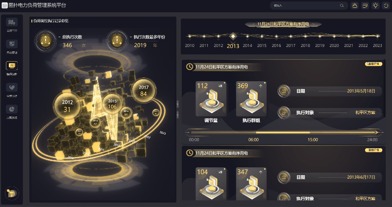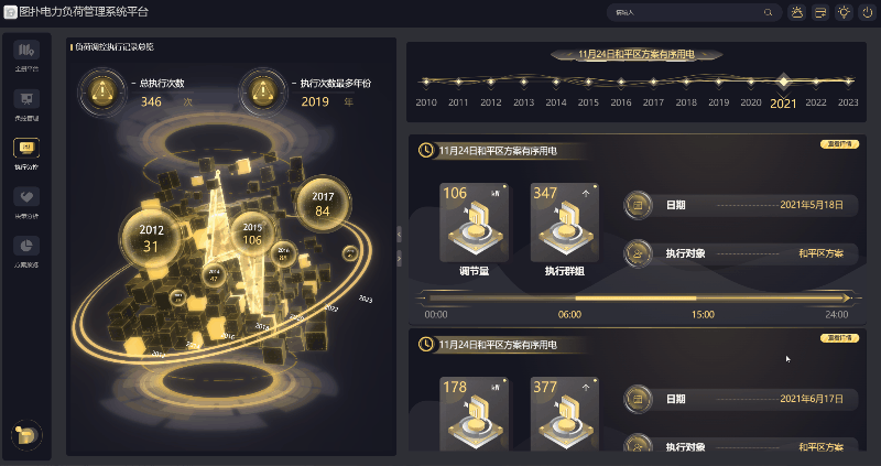各年份负荷调控执行记录,通过时间轴与记录数量来体现。