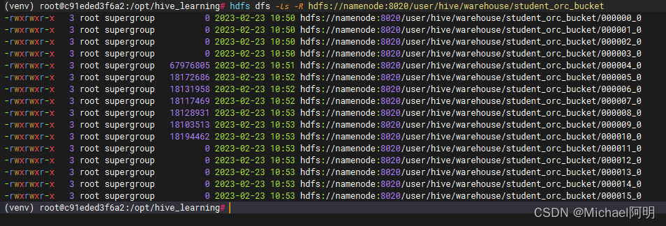 hdfs dfs -ls -R hdfs://namenode:8020/user/hive/warehouse/可以查看已有的目录和文件