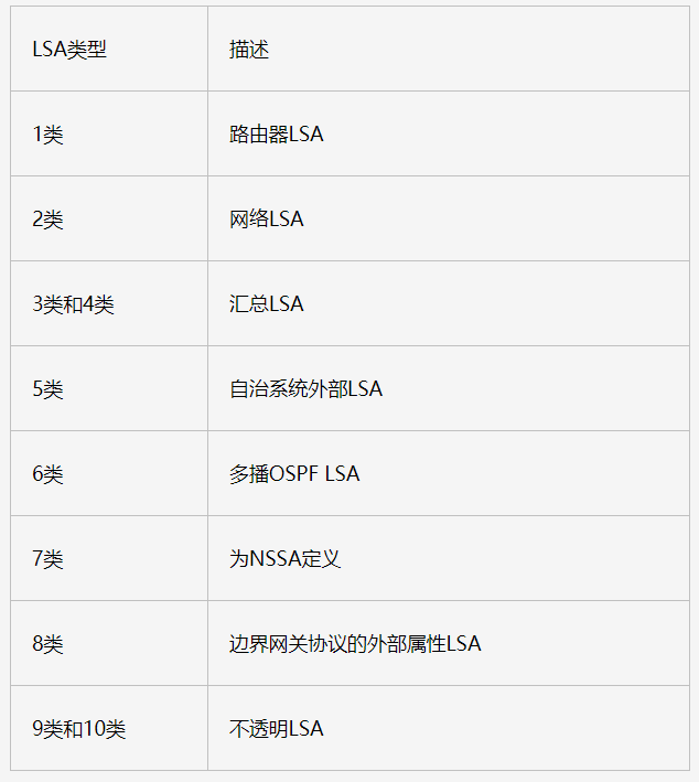 OSPF 定义了不同的路由器类型,对于不同的路由器类型,会再单独整理,这里整理下OSPF的六种LSA类型,这里是以思科路由器来说的,不同的厂商可能会有不同。