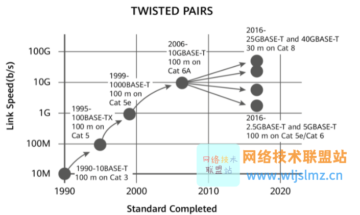 在传统的园区网络中,一般使用双绞线作为连接交换机和AP的线缆,这样既能完成数据的传输,也可以完成AP的PoE供电。但是,随着Wi-Fi技术的演进,对于接入交换机和AP之间的这段线缆的要求越来越高,特别是面向未来的Wi-Fi 7技术,需要这段线缆同时解决高速的数据传输和长距离的PoE供电的问题。在带宽方面,目前正在大规模商用的Wi-Fi 6标准要求这段线缆的带宽达到10 Gbit/s;未来的Wi-Fi 7标准则要求这段线缆的带宽需要达到40 Gbit/s。在PoE供电方面,很多AP的安装环境相对复杂,需要超过100米的PoE供电,例如某些体育场馆的AP需要300米甚至更长距离的PoE供电,而传统的双绞线的供电距离只有100米,无法满足需求。
