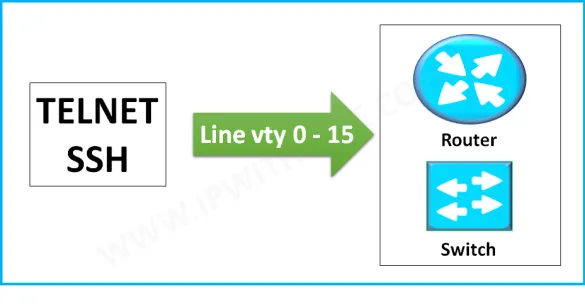 抽象的“ 0 – 4 ”表示设备可以同时允许 5 个虚拟连接,可能是 Telnet 或 SSH。在某种程度上,我们可以说 5 (0 – 4) 是路由器或交换机的连接端口,事实上,我们可能有多达 16 个(0 – 15)的连接端口。