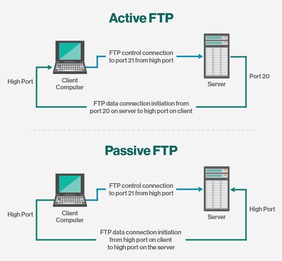 FTP 服务器和客户端软件可以通过几种不同的方式使用 FTP 进行文件传输: