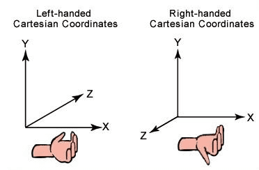 })这里需要稍微介绍下 Three.js 的坐标轴系,它采用右手坐标系, 如下图所示,与此对应的还有左手坐标系: