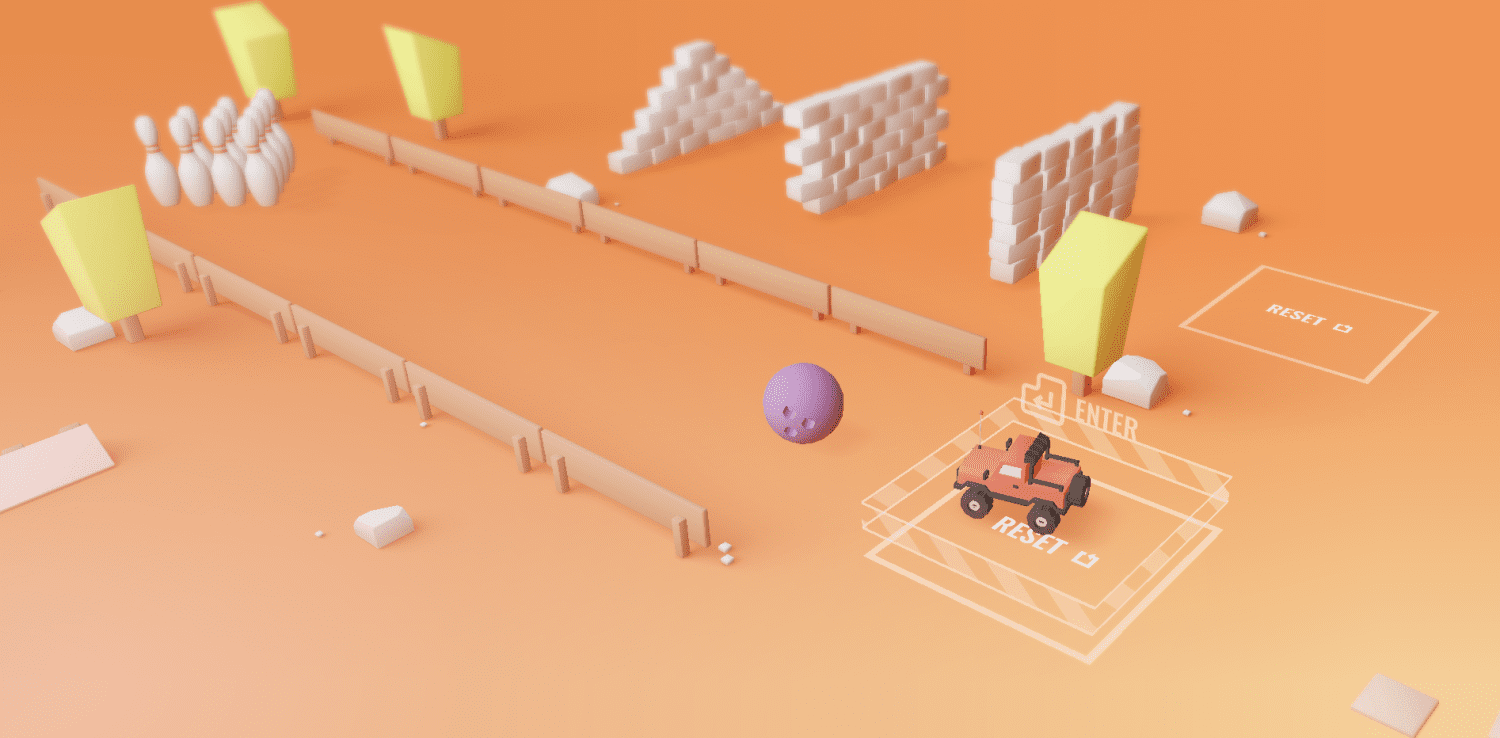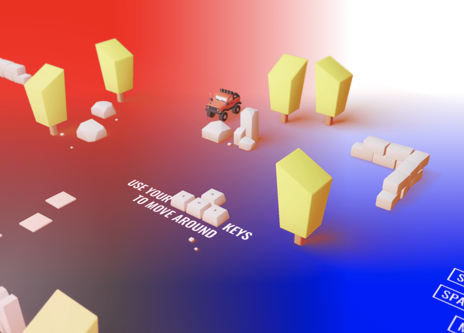 正当你“开”着小车唱着歌,突然就被作者创造的这一个 3D 世界给“绑架”了!因为他不止有简单的模型,还附带了一些非常有意思的小游戏。