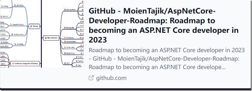 社区提供了令人惊叹的全包含路线图,以掌握取得成功所需的技能和知识,例如面向后端开发人员的 ASP.NET 核心路线图。您可以轻松地在github 上找到其他方向的路线图。