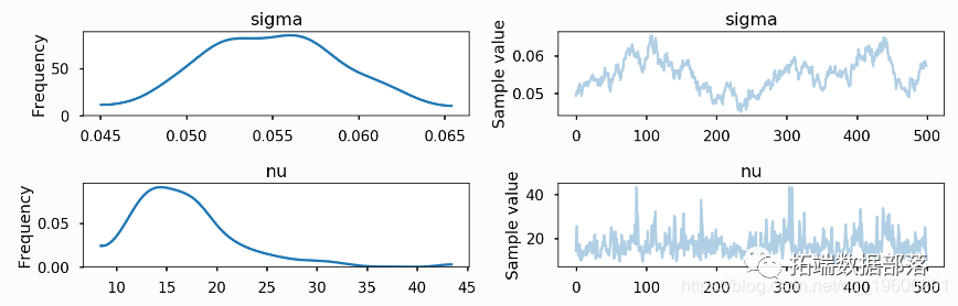 obs=returns)对于这个模型,最大后验(Maximum A Posteriori,MAP)概率估计具有无限的密度。然而,NUTS给出了正确的后验。
