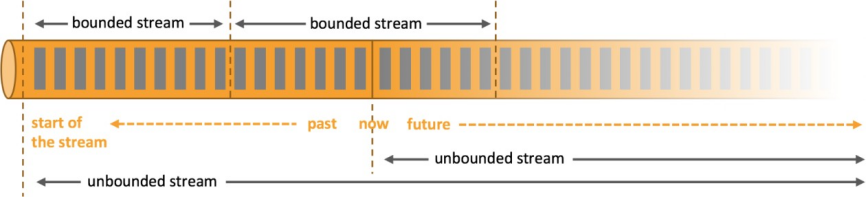 有定义流的开始,也有定义流的结束。有界流可以在摄取所有数据后再进行计算。有界流所有数据可以被排序,所以并不需要有序摄取。有界流处理通常被称为批处理。