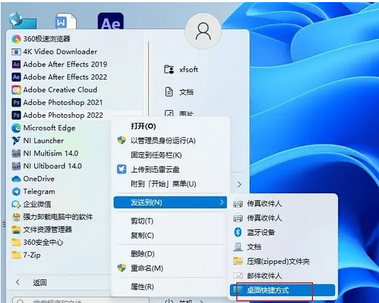 7.如果桌面没有快捷方式,在菜单栏中把photoshop 2022软件发送到桌面打开软件 ,然后就可以免费使用了