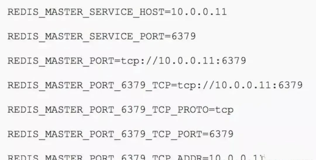 比如,一个ServiceName为redis-master的Service,对应的ClusterIP:Port为10.0.0.11:6379,则对应的环境变量为: