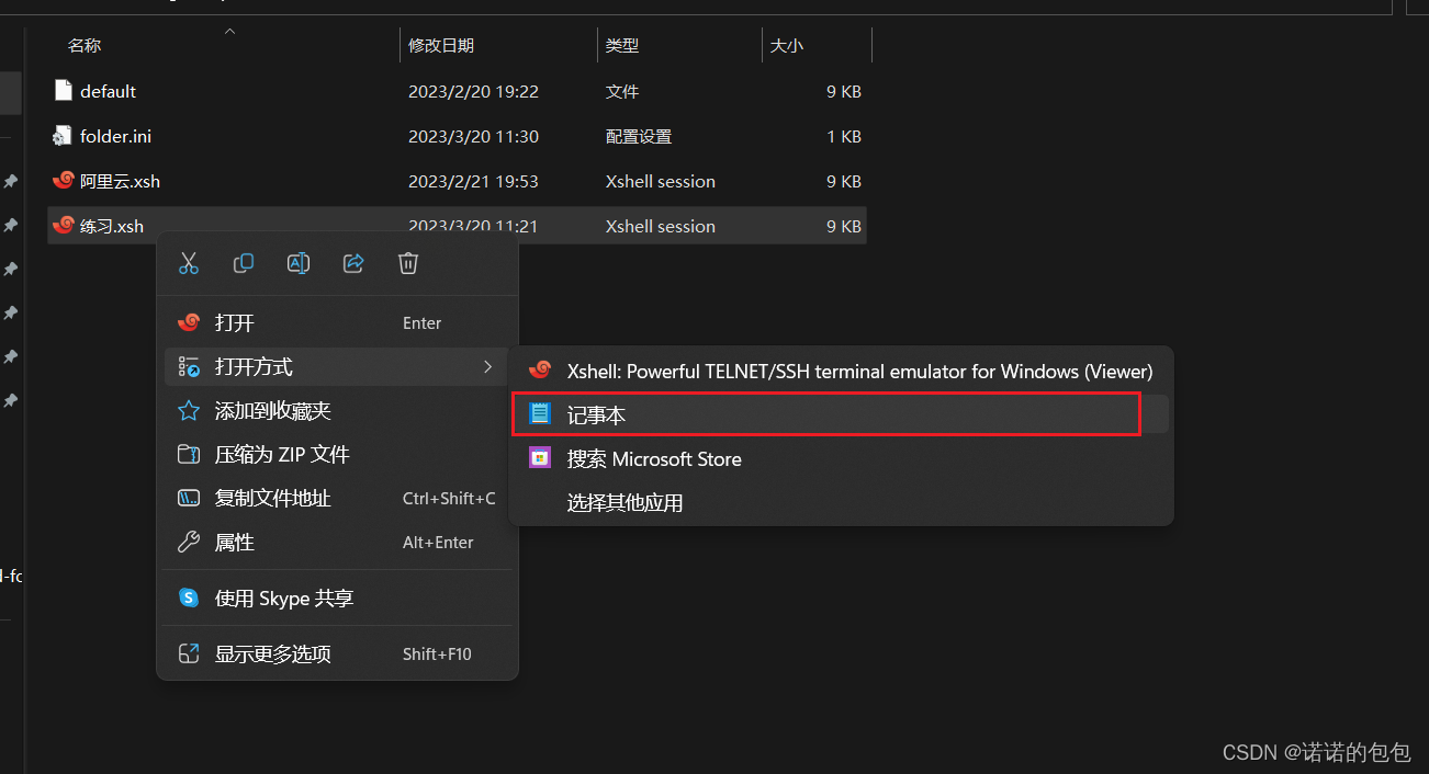 二、打开后选择以记事本方式打开该会话