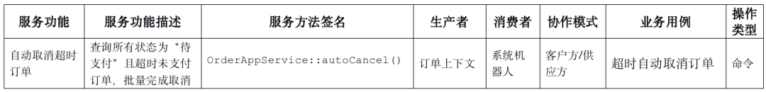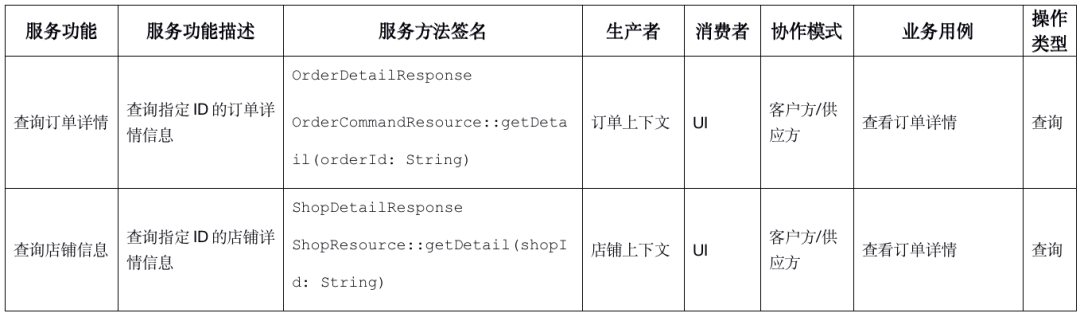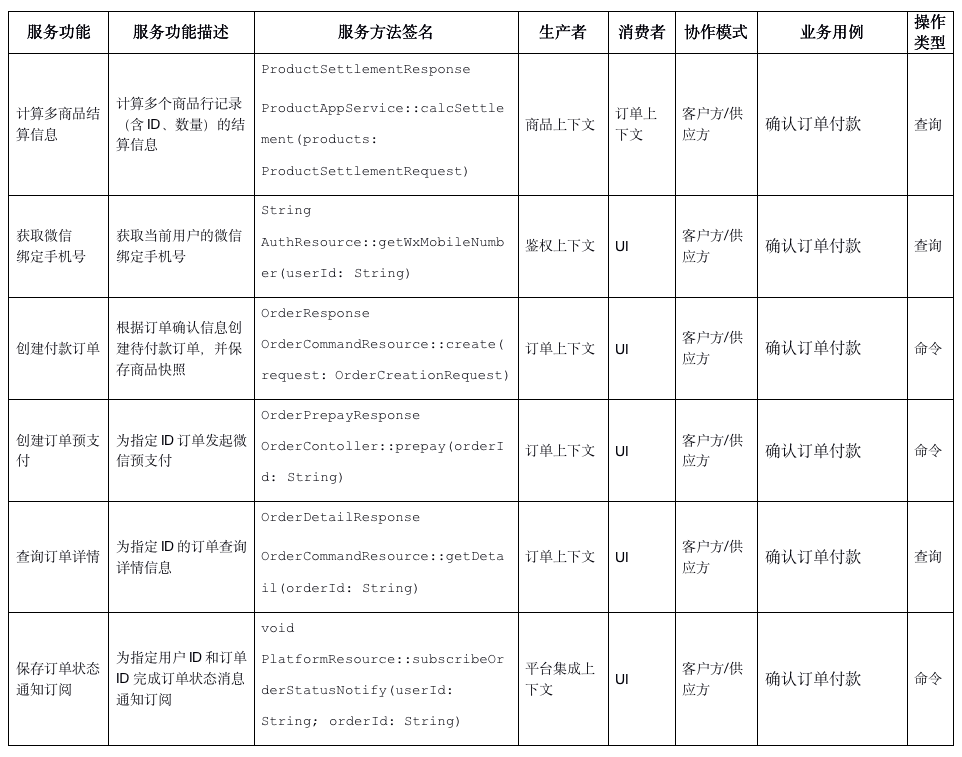 下面内容的表格中,需要说明下:“业务服务”和“业务用例”是一个意思,不是属于 DDD 的远程服务、本地服务、应用服务等范畴的实际服务,而只是一种“业务”层面的描述名词。