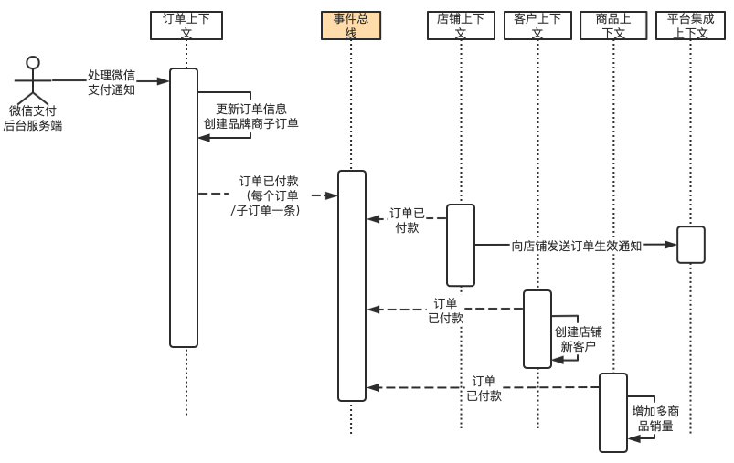 由于该用例只涉及到订单一个上下文,且没有与外部伴生系统产生关系,且前端与服务端只有一次交互,故无需绘制服务序列图。