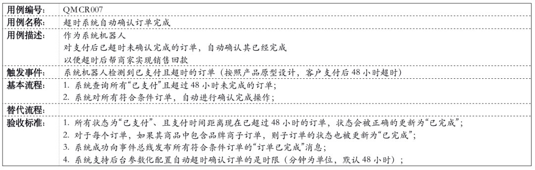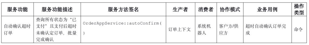 由于该用例只是“确认订单完成”的批量操作,不过是前面加了一段批量查询出超时订单,故不再绘制服务序列图。