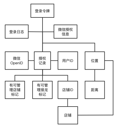 根据用例“登录系统”规约查找名词:微信 openid、微信授权信息、授权记录、用户 ID、有可管理店铺标记、有可管理接龙标记、店铺 ID、位置、距离。