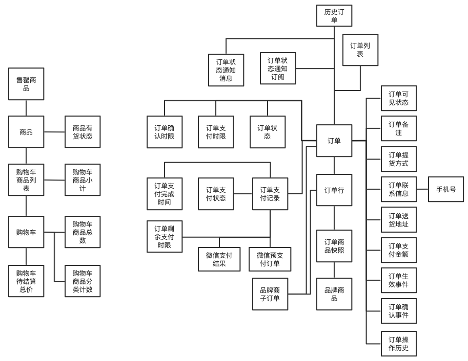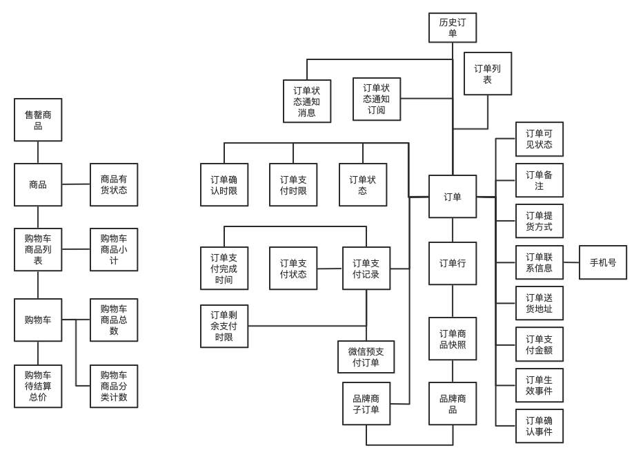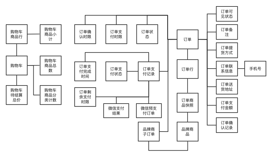 “购物车商品小计”、“购物车商品分类计数”,这两个是有结构性的、多字段属性的值对象,作为“购物车”和“购物车商品行”的属性存在,而无需作为带标识 ID 的实体对象存在。