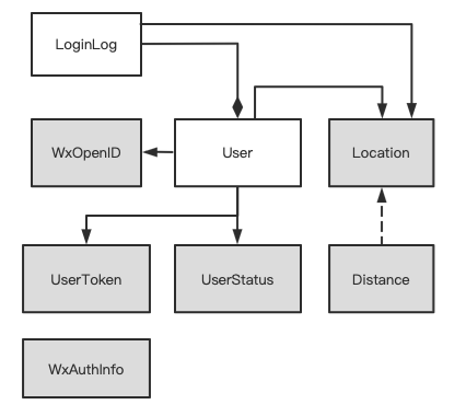 “位置”。由于我们并不是一个物流或地图类应用,不需要对位置进行精确的匹配,所以作为值对象。并且,在我们的“授权上下文”中,其应该是用户对象在某个时刻的一个计算属性(根据手机定位计算)。