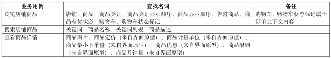 根据各业务用例规约查找名词如下表: