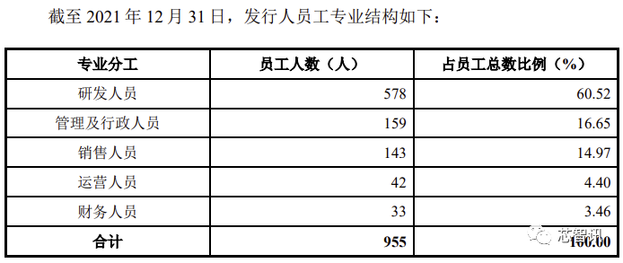 截至2021年12月31日,集创北方共有955名员工,研发人员为578人,研发人员占比达60.52%。