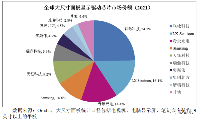 在全球大尺寸 LCD 面板显示驱动芯片的市场占有率排名中,位列中国大陆厂商第二名;