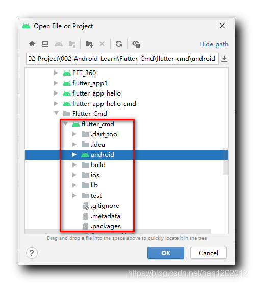 选择已经创建的 Flutter 项目中的 android 目录 ;