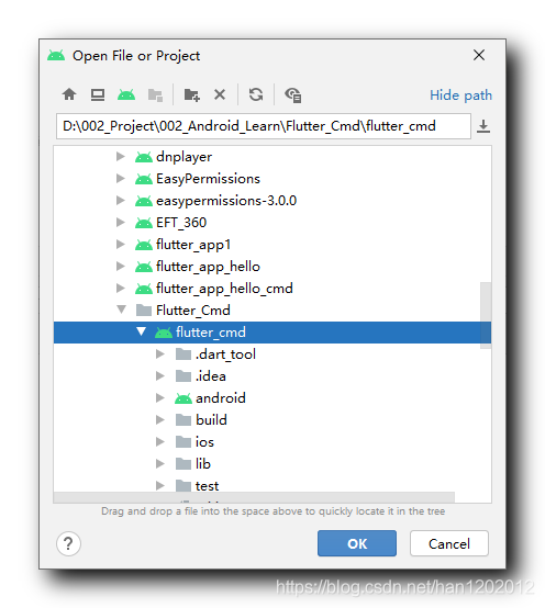 在弹出的对话框中 , 选择刚才使用命令行创建的 Flutter 项目 :