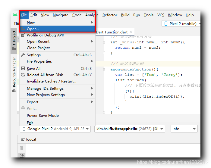 Android Studio 中选择 菜单栏 / File / Open 选项 ;