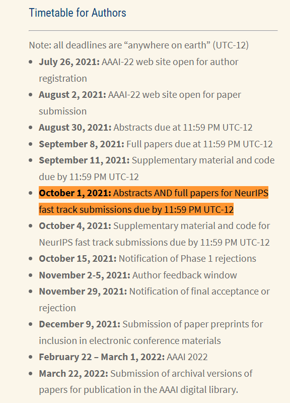 除了 AAAI-22 要求的常规信息,NeurIPS 转投的论文还必须附带以下所有信息: