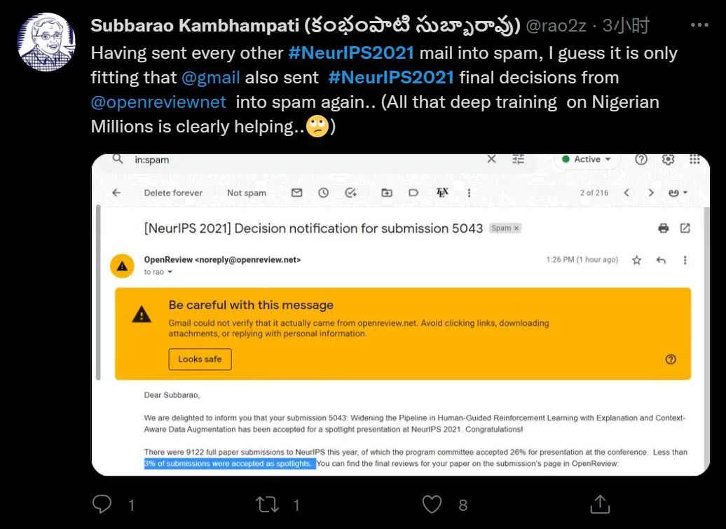 论文接收通知竟被标记成了垃圾邮件,一场虚惊。