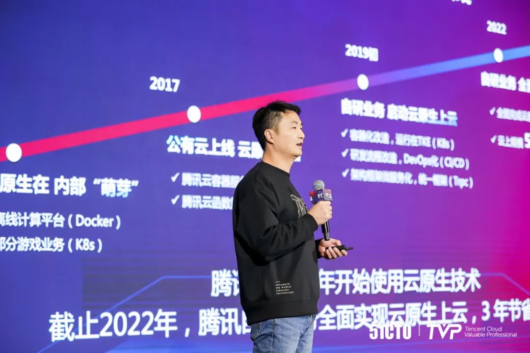 作为峰会主办方,腾讯云副总裁黄俊洪带来了《云原生时代下,应用全生命周期管理之道》主题致辞。黄俊洪提到,在新经济的推动下,企业上云用云已进入崭新发展阶段,云原生技术也已步入发展成熟期。而技术管理者所面临的主要挑战,是如何将云原生技术红利充分释放。
