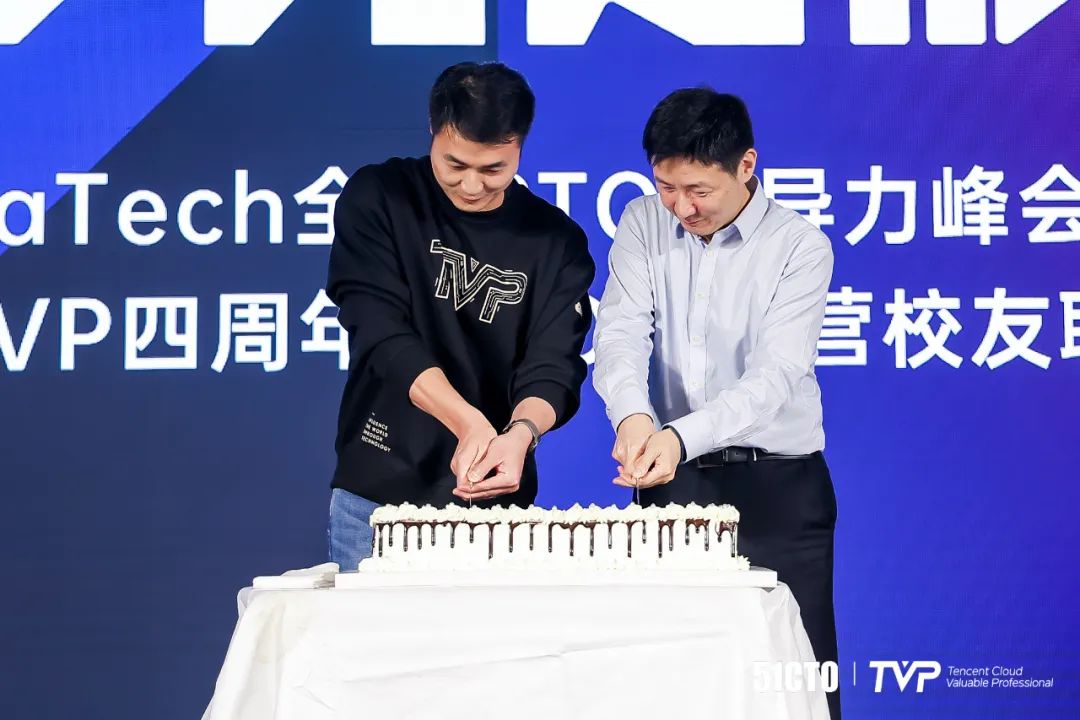 在全天的领导力峰会后,腾讯云 TVP 四周年、CTO 训练营校友联合庆典也在晚上盛大举行。各位嘉宾欢聚一堂,共同庆祝腾讯云 TVP 四周年生日。开怀畅聊,举杯共饮,欢声笑语汇聚为今宵难忘的美好,大家共同期待着下一次相聚在 TVP 的五周年,十周年。