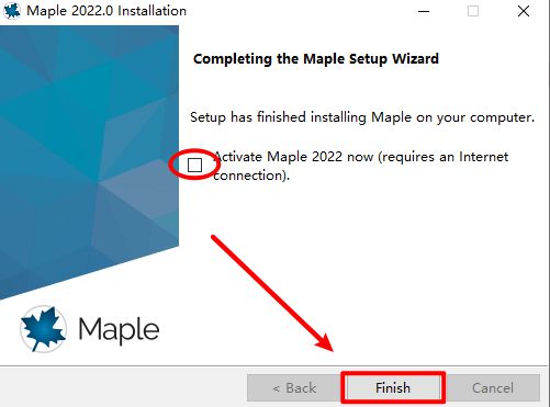 13.取消勾选Activate Maple 2022...,点“Finish”