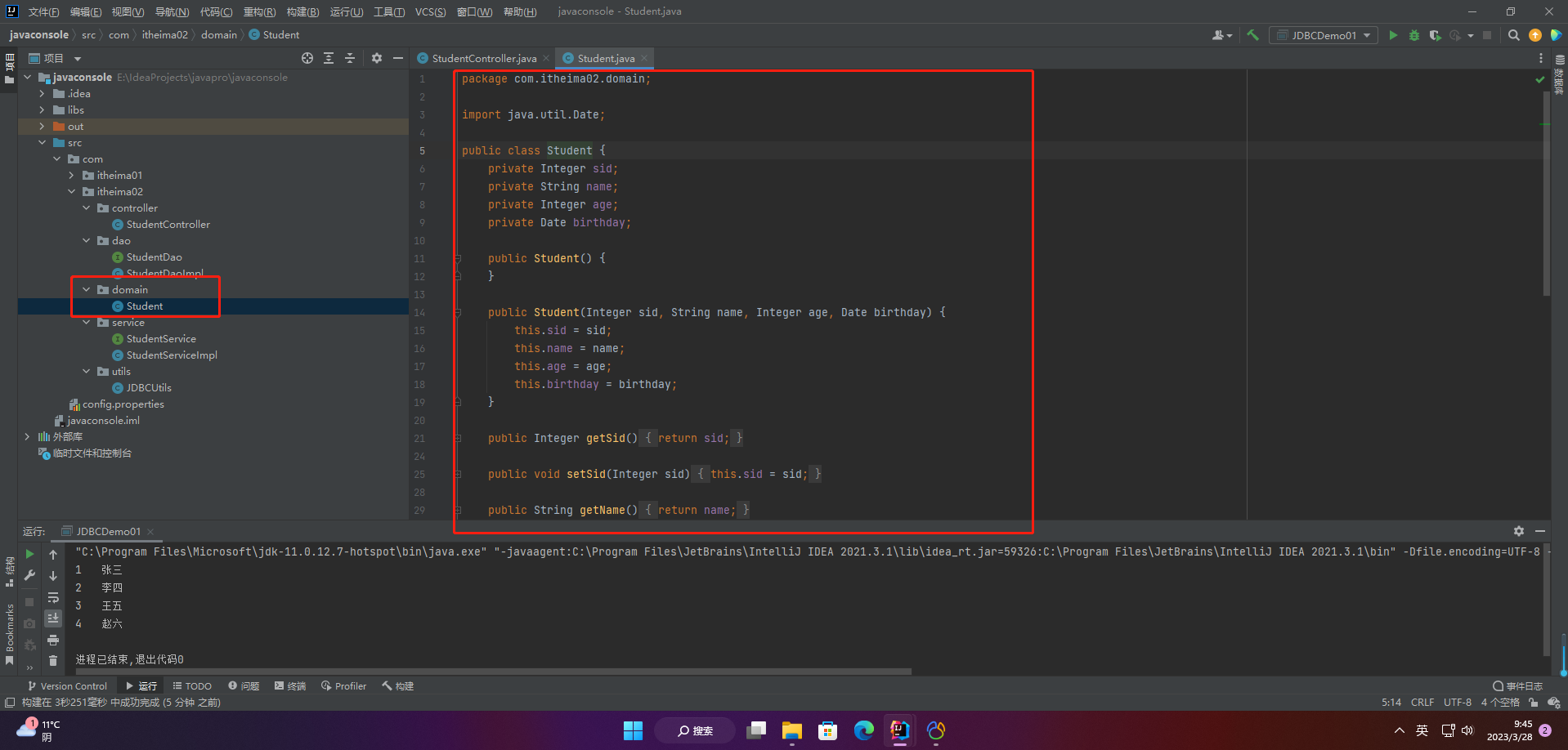 //封装Student对象
