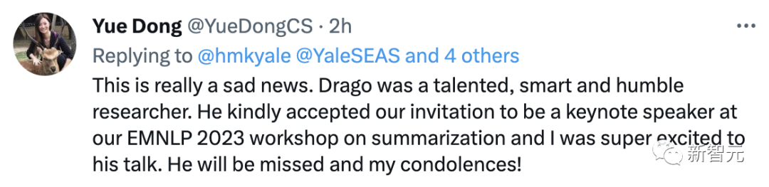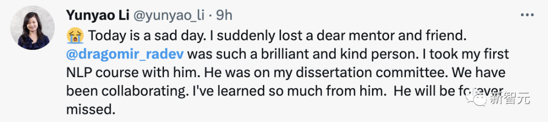 UC Santa Barbara计算机科学系助理教授王威廉同样发文对Dragomir Radev的去世表达了深切的悼念。