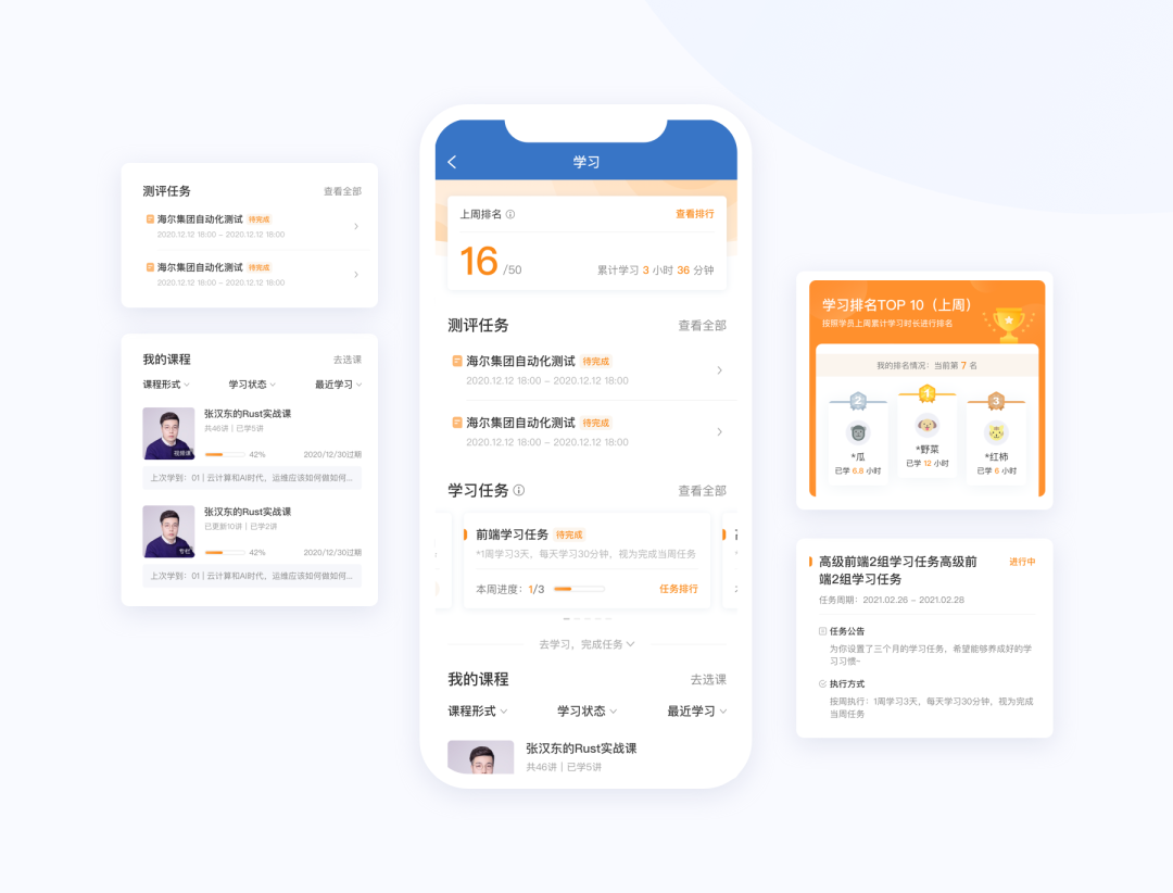 在企业微信学院的学习主页,清晰的罗列出学习任务和课程进度,实时对比,营造好的学习氛围。