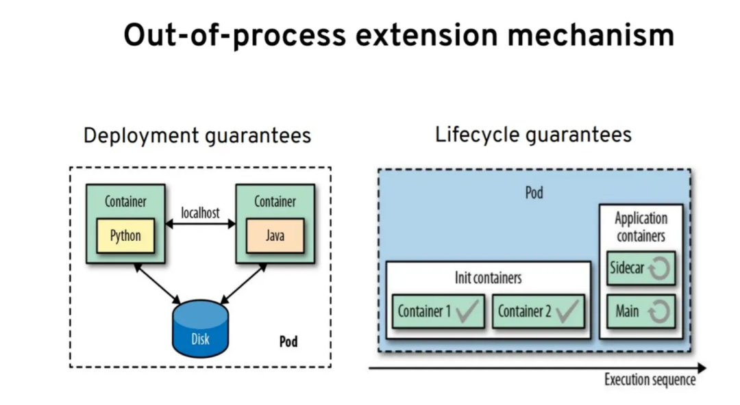 而应用容器则是并行运行的。它们会在 pod 的整个生命周期中运行,这是 sidecar 模式的基础。sidecar 可以运行多个容器,它们相互协作,共同为用户提供价值。这就是我们目前能够看到的扩展 Kubernetes 以获取额外能力的主要机制。