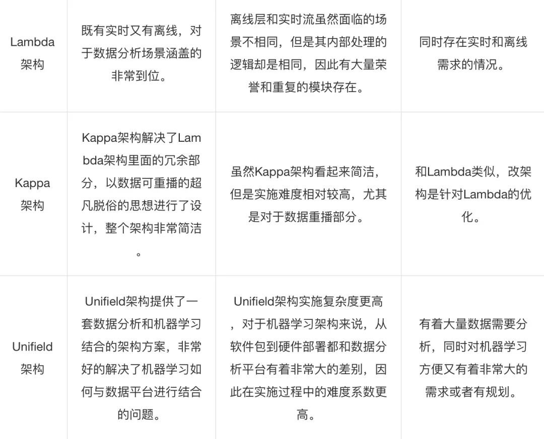 Lamabda 架构理念从出现到发展这么多年,优缺点非常明显。比如稳定与性能上的优势,ETL 处理计算利用晚上时间来做,能复用部分实时计算的资源。劣势,两套数据流因为结果要做合并,所有的算法要实现两次,一次是批处理、一次是实时计算,最终两个结果还得做合并显得会很复杂。