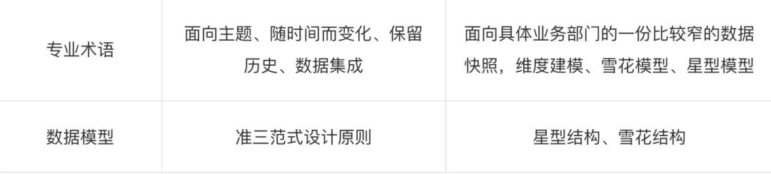 但是考虑到在实施中可能会存在多个并行的项目,是需要在数据标准化、模型阶段是需要进行维度归一化处理,需要有一套标准来定义公共维度,让不同的数据集市项目都遵守相同的标准,在后面的多个数据集市做合并时可以平滑处理。比如业务中相似的名词、不同系统的枚举值、相似的业务规则都需要做统一命名,这里在现在的中台就是全域统一 ID 之类的东西。