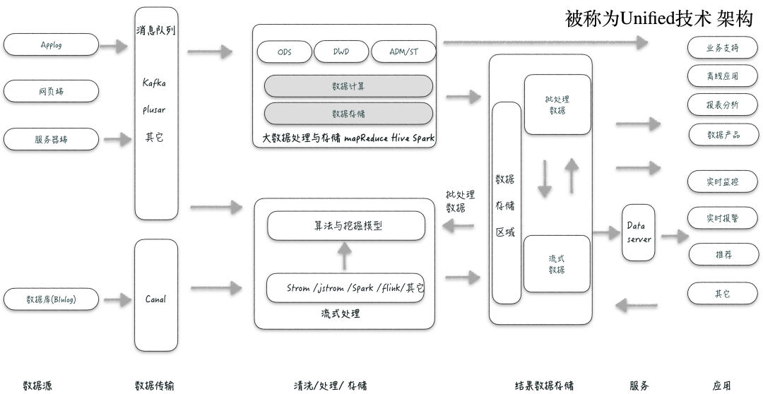 后续阿里巴巴淘系的 TImeTunnel 等更多的近百种大数据处理的开源技术,进一步促进了整个大数据处理架构与技术框架的发展,我在后面会给出一个比较完善截止到目前所有技术的数据处理框架。