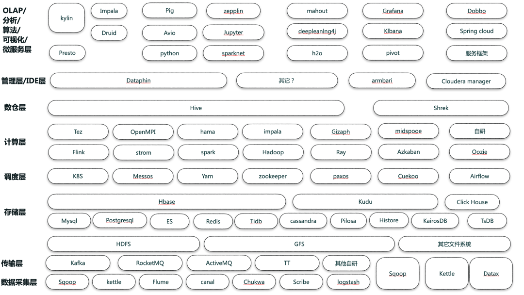 这个技术栈暂时没有按照没有按照批处理、流式技术的分类的角度来分类,稍微有点遗憾。