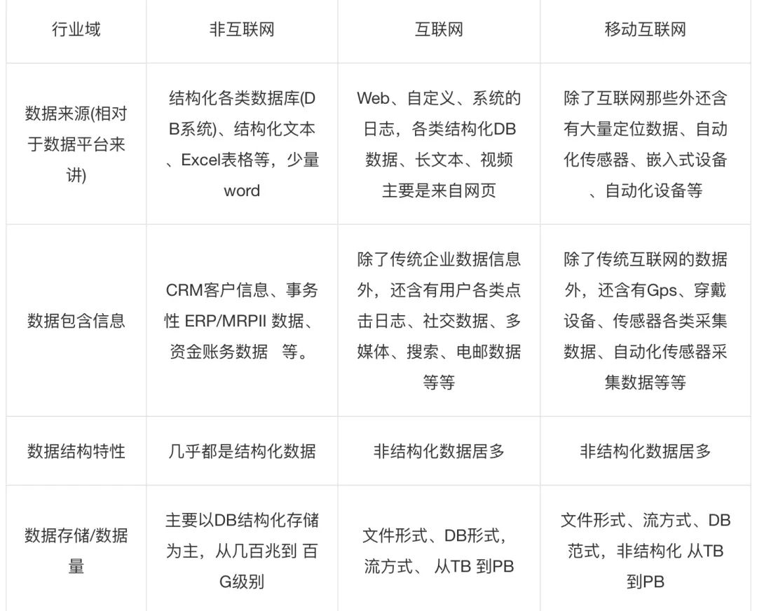 三个时代:非互联网、互联网、移动互联网时代,每一种时代的业务特点、数据量、数据类型各不相同,自然数据架构也是有显著差异的。