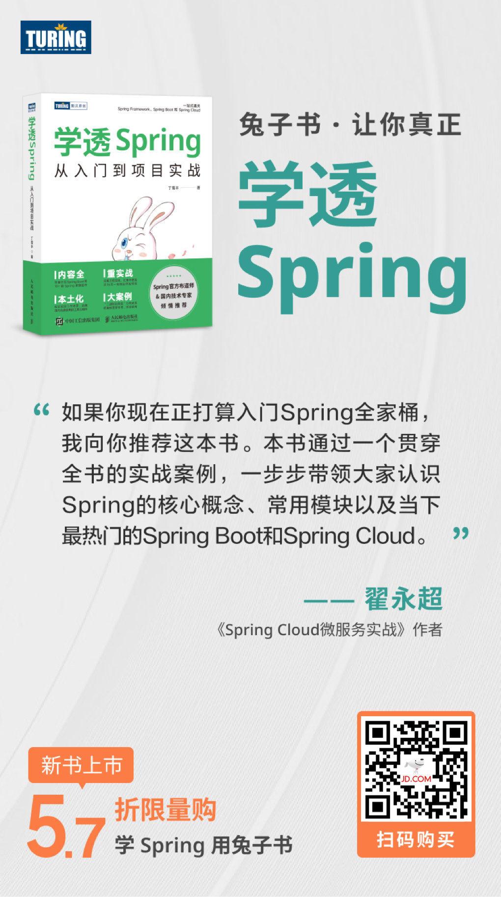 随着 Spring 社区的不断发展与壮大,框架功能已经覆盖了 Java 日常开发的方方面面。虽然 Spring 的能力异常强大,但与此同时 Spring 项目体系变得非常复杂,如何循序渐进地学习就成了初学者最为苦恼的问题。如果你现在正打算入门 Spring 全家桶,我向你推荐这本书。本书通过一个贯穿全书的实战案例,一步步带领大家认识 Spring 的核心概念、常用模块以及当下最热门的 Spring Boot 和 Spring Cloud。此外,本书附录中的内容是目前市面上的图书所欠缺的——对于 Spring 全新技术的解读,可以帮助读者紧跟前沿技术步伐,完美衔接日后可能出现的实际工作场景,并为接下来的自我进阶提供极具参考价值的学习方向。
