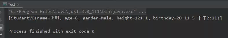 Student student = Student.builder().name("小明").age(6).gender(GenderEnum.Male).height(121.1).birthday(new Date()).build();