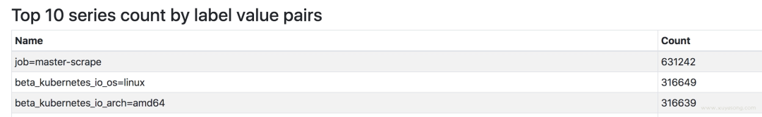tsdb 状态: https://www.google.com/url?q=https%3A%2F%2Fprometheus.io%2Fdocs%2Fprometheus%2Flatest%2Fquerying%2Fapi%2F%23tsdb-stats&sa=D&sntz=1&usg=AFQjCNFE5AzQxyhzt8SqQLHPUySZl3lNNw