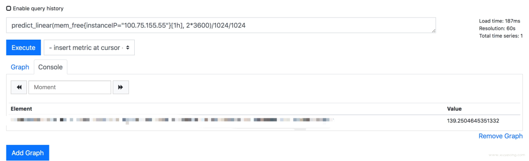 mem_free{instanceIP="100.75.155.55"}[1h]如果你要基于 metric 做模型预测,可以参考下forecast-prometheus[14]