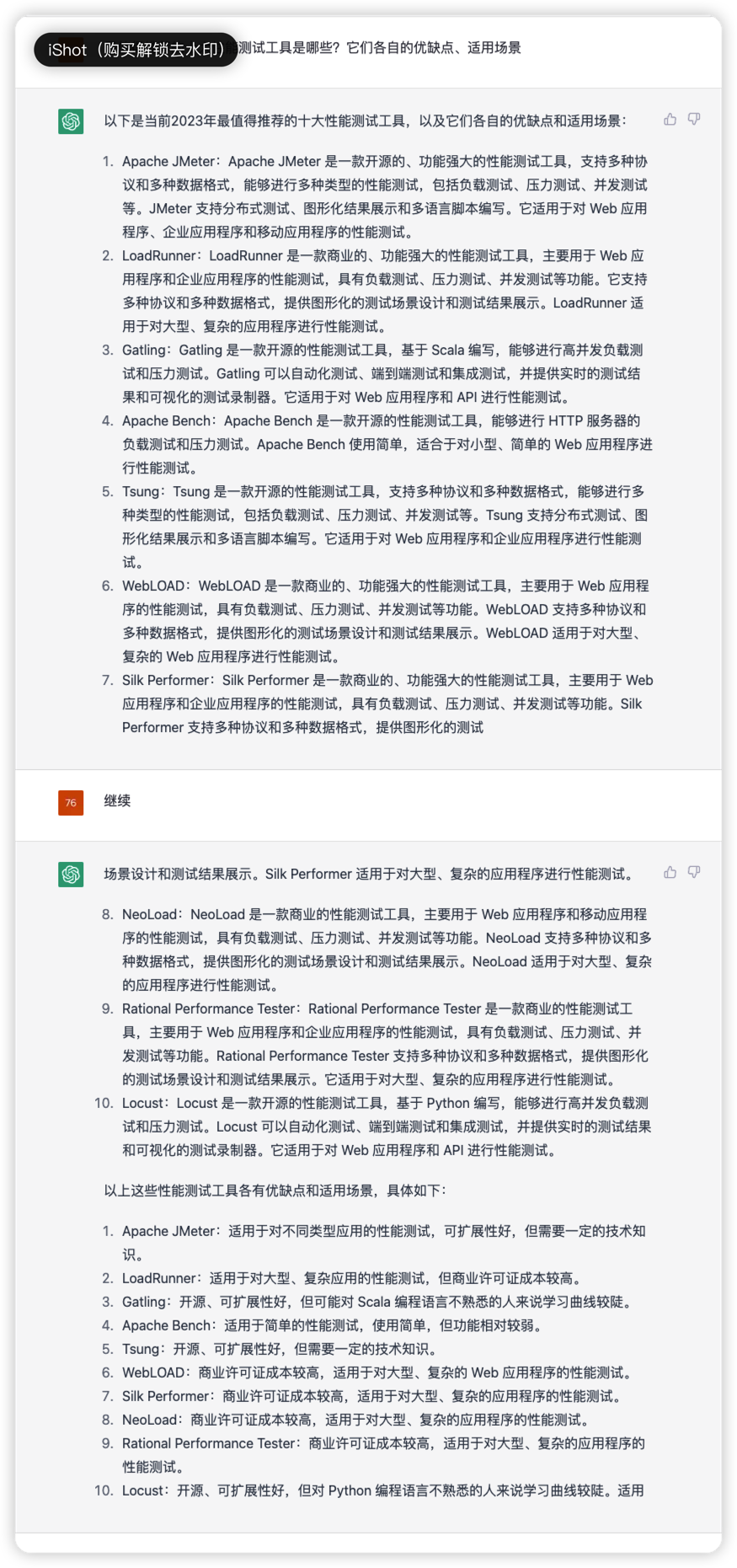7、Silk Performer:Silk Performer 是一款商业的、功能强大的性能测试工具,主要用于 Web 应用程序和企业应用程序的性能测试,具有负载测试、压力测试、并发测试等功能。Silk Performer 支持多种协议和多种数据格式,提供图形化的测试场景设计和测试结果展示。Silk Performer 适用于对大型、复杂的应用程序进行性能测试。