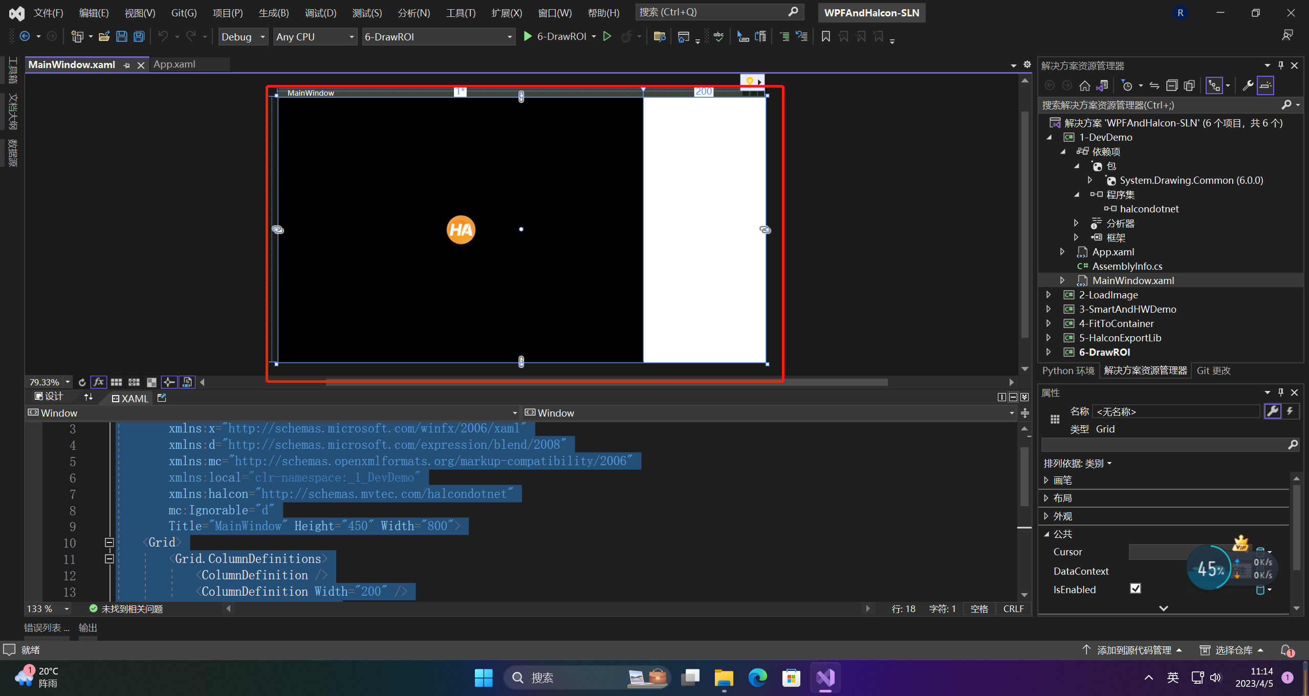 <halcon:HSmartWindowControlWPF x:Name="HS" Grid.Column="1" />