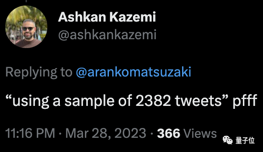 这项对比基于研究团队此前收集到的2382条推文样本。