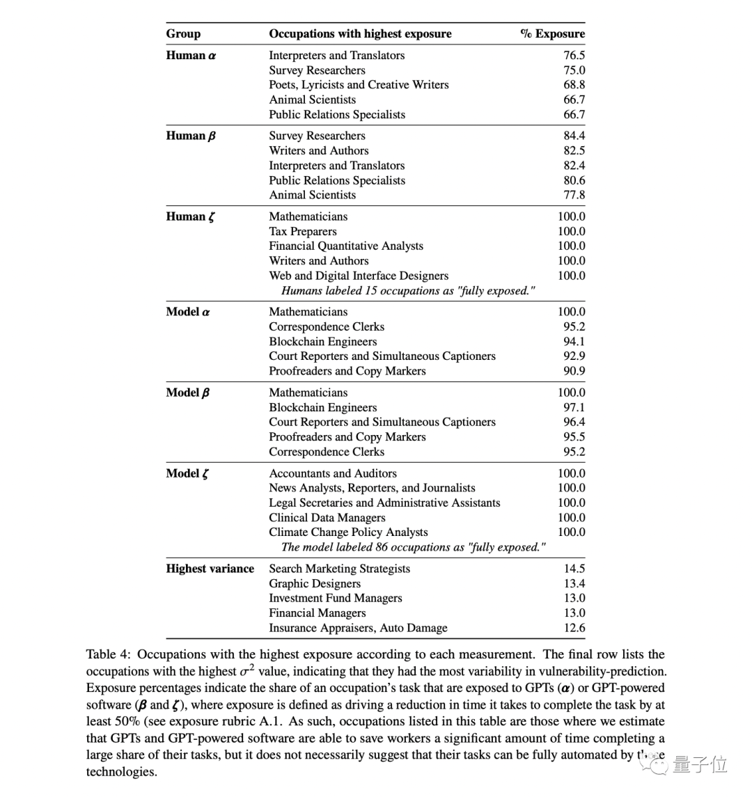 OpenAI还进一步列出了会被影响的具体职业,从大到小依次是: