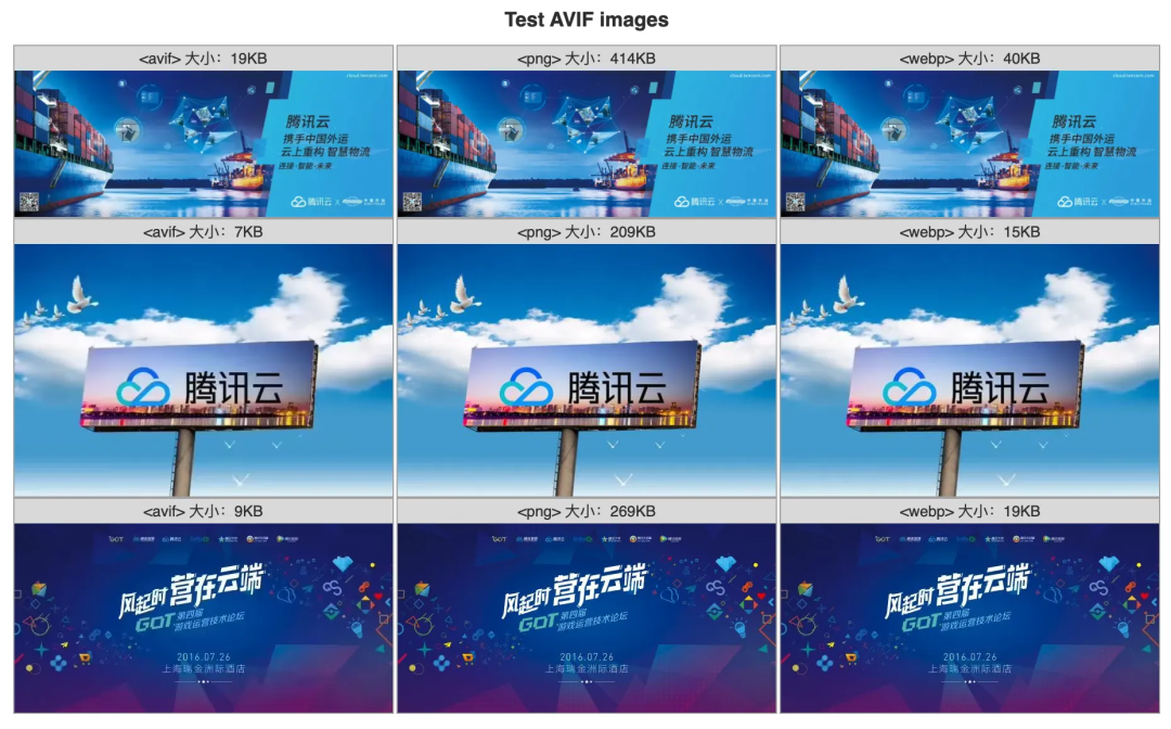 基于腾讯视频现有的业务,对比了多组同一图片在相同质量的前提下,不同格式的图片的压缩情况: